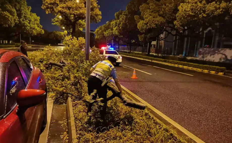 “竹節(jié)草”來勢洶洶,給出行帶來極大不便。園區(qū)公安警力始終堅守崗位,風(fēng)雨中疏導(dǎo)交通,保障道路有序,遇到受困群眾,及時伸出援手,提供暖心救助。