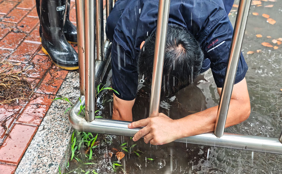 唯亭街道下穿涵洞較多,為避免積水導(dǎo)致安全隱患,街道緊急抽調(diào)綜合執(zhí)法隊員、市政物業(yè)公司等組成應(yīng)急隊伍,24小時蹲點監(jiān)測守護(hù),及時清理落葉、碎石等堵塞物,確保排水管網(wǎng)通暢。小區(qū)里,社區(qū)工作人員也緊抓風(fēng)雨暫歇的間隙深入排查,聯(lián)動物業(yè)及相關(guān)部門及時排澇、疏通,合力保障居民安全與小區(qū)秩序。