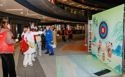 作為市集“集券核心打卡點(diǎn)”,古風(fēng)運(yùn)動(dòng)區(qū)的蹴鞠、射箭、投壺三大項(xiàng)目一經(jīng)開放就人氣拉滿。活動(dòng)以游園券作為通用兌換憑證,完成運(yùn)動(dòng)項(xiàng)目即可獲取,趣味與挑戰(zhàn)性拉滿。現(xiàn)場,紅色管家志愿者全程在線指導(dǎo)規(guī)則、示范動(dòng)作,青年情侶、好友組隊(duì)摩拳擦掌踴躍參戰(zhàn)。蹴鞠場地里,大家瞄準(zhǔn)目標(biāo)全力開踢,命中瞬間的歡呼聲此起彼伏;射箭區(qū)域內(nèi),年輕人踮腳拉弓、精準(zhǔn)瞄準(zhǔn)靶心,專注模樣收獲一眾點(diǎn)贊;投壺項(xiàng)目前,參與者屏息凝神投放箭矢,每中一支都忍不住歡呼喝彩。不少青年組隊(duì)PK挑戰(zhàn),在競技互動(dòng)中拉近距離,一張張游園券不僅是實(shí)力的證明,更裝滿了歡樂時(shí)光。