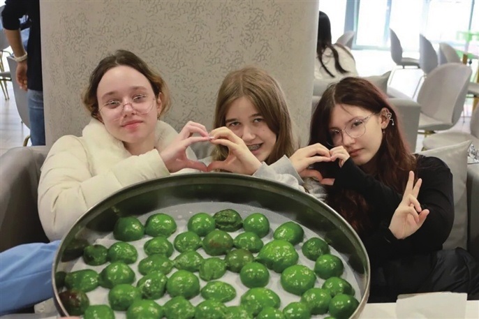 傳統(tǒng)文化的體驗,成為此行最濃墨重彩的一筆。清晨的操場上,德國師生在八段錦的一招一式中感受東方養(yǎng)生的平和律動;中文課堂里,一場以“星海”為主題的繞口令挑戰(zhàn),讓客人們在唇齒開合間解鎖漢語音律的靈動魅力。在非遺工坊,竹絲在指間穿梭,一艘艘象征友誼的小船逐漸成型;食堂里,艾草的清香彌漫,中德師生一同揉面、包餡、蒸煮,在江南春日的煙火氣中品味青團(tuán)子的清甜。