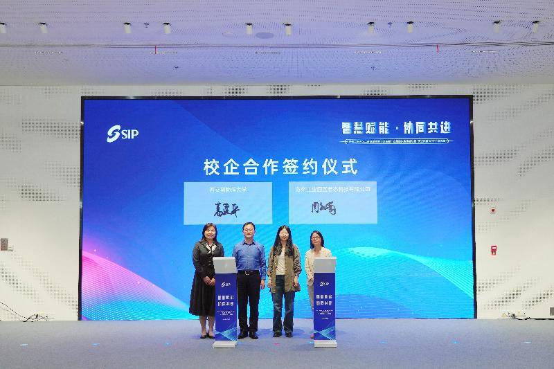 現(xiàn)場,西交利物浦大學與園區(qū)若態(tài)科技有限公司簽署校企合作意向,未來雙方將從人才培養(yǎng)、人才引進等多維度進行深度合作,加速產(chǎn)教融合發(fā)展。同時,園區(qū)海關(guān)借助園區(qū)工商聯(lián)(總商會)平臺,發(fā)布“關(guān)心助企”服務(wù)品牌,從而為園區(qū)外貿(mào)企業(yè)提供更便捷的通關(guān)渠道,更優(yōu)質(zhì)的政務(wù)產(chǎn)品,更舒心的營商環(huán)境。