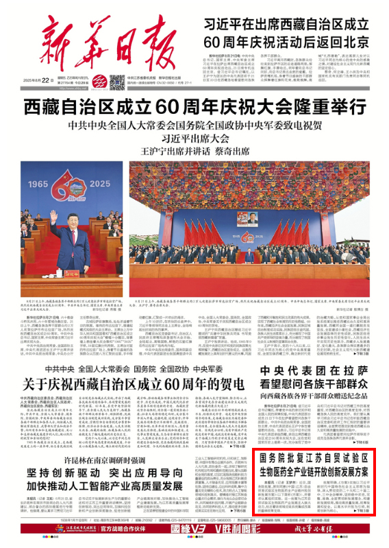 批復(fù)明確,《方案》實(shí)施以習(xí)近平新時(shí)代中國特色社會(huì)主義思想為指導(dǎo),深入貫徹黨的二十大和二十屆二中、三中全會(huì)精神,堅(jiān)持穩(wěn)中求進(jìn),完整、準(zhǔn)確、全面貫徹新發(fā)展理念,構(gòu)建新發(fā)展格局,推動(dòng)高質(zhì)量發(fā)展,統(tǒng)籌發(fā)展和安全。以高水平開放為引領(lǐng)、制度創(chuàng)新為核心,開展首創(chuàng)性、集成式探索,目標(biāo)是將中國(江蘇)自由貿(mào)易試驗(yàn)區(qū)打造成為具有世界影響力的生物醫(yī)藥產(chǎn)業(yè)集聚地和更具國際競爭力的創(chuàng)新發(fā)展高地。