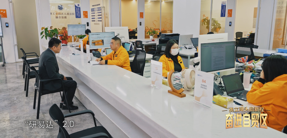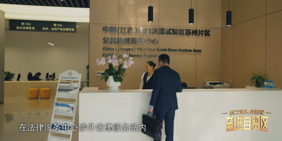 這座大廈的一樓是蘇州片區優化法治化營商環境的標志性工程——法律服務中心。公共法律服務中心圍繞涉外、知識產權、公證、鑒定、商事調解、律師律所等設立多個服務窗口,讓企業進“一扇門”就能一站式獲取覆蓋企業發展全生命周期的法律服務。