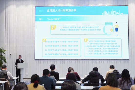 At the event, the representative from the Organization Department of CPC SIP Working Committee gave the participants a specific introduction to the “1+4+X” policy system under the program, which consists of one framework document plus four sets of specific policies for different kinds of talents and several other sets of policies for special talents.