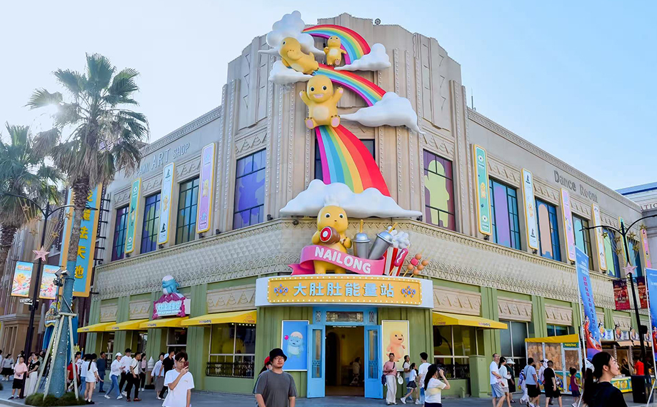 國內首座奶龍魔法時光主題區成為親子家庭“頂流”。3萬平方米空間內,“奶龍魔法天地”“奶龍歡樂駕校”等三大分區提供童話冒險、模擬駕駛等體驗。其中,超3000平方米的“奶龍魔法天地”恒溫22℃,高空攀爬、蹦床、動感秋千等趣味設施一應俱全,堪稱“夏日避暑天堂”。主題區將江南文化融入IP開發,讓傳統與潮玩碰撞出新火花,開創主題公園IP本土化的新路徑。