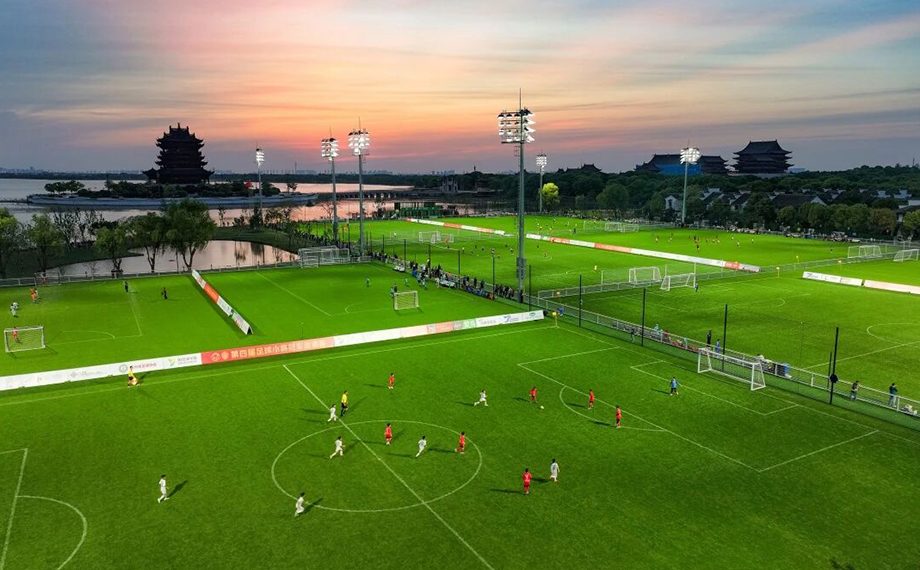 作為比賽場地的陽澄湖半島足球公園,設(shè)有6片飛盤場地,均采用達到國際足聯(lián)認證標準的11人制濱水真草場地。這里有國際足聯(lián)認證標準的真草,柔軟緩沖,保護每一寸奔跑的激情;優(yōu)質(zhì)的排水系統(tǒng)與平整度,雨天不積水,晴日不揚塵,全天候保障比賽流暢;優(yōu)美的景觀設(shè)計,濱水而建,湖風(fēng)拂面、綠意環(huán)繞,競技與自然在此完美融合……這里不僅是賽場,更是一片釋放熱情的飛盤樂園。