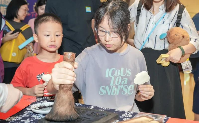 華誼兄弟電影樂園的志愿者為市民介紹木刻版畫的種類、應用場景和代表性作品,并邀請市民體驗木刻版畫制作。市民們充分發揮創意,創作出風格各異的作品。
