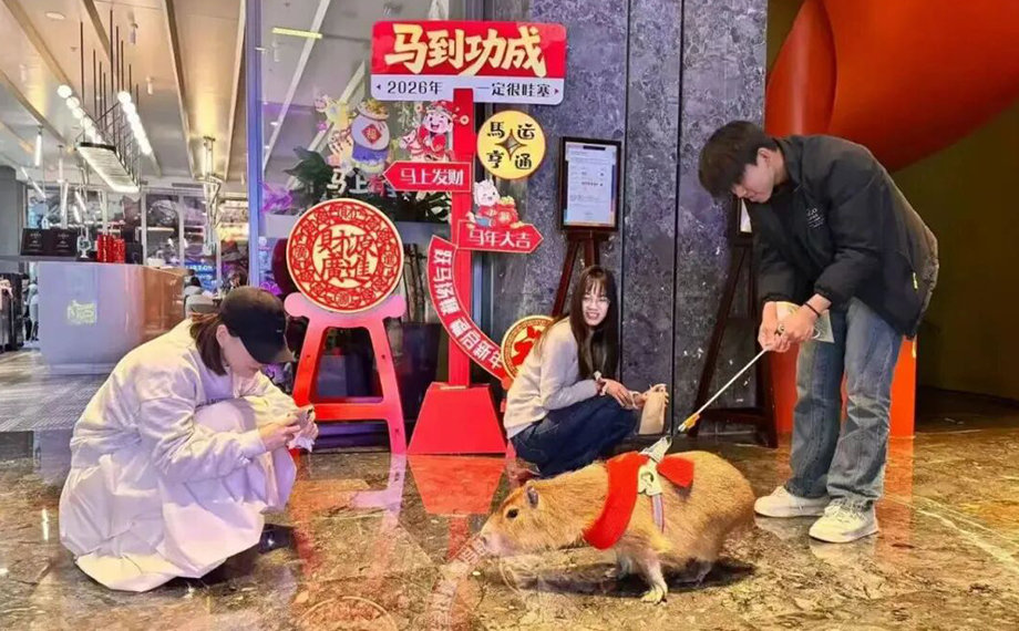 歐式建筑間張燈結彩,新春裝置前人流如織。春節期間,比斯特蘇州購物村攜手桃花塢木版年畫傳承人喬麥及其工作室,共同打造八款限定財神形象,分布于購物村內各地,并同時推出“尋財神,納福禮”非遺打卡活動,集齊八款財神即可兌換好禮,吸引了眾多游客積極參與。