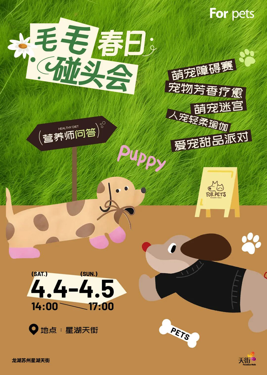 4月4日—6日,星湖天街·萌寵踏青周正式啟動。讓寵物友好融入生活方方面面,和毛孩子一起感受春天。春日市集、萌寵市集、puppy野餐會、寵物領養、青團DIY、美食試吃會……星湖天街準備了豐富活動,等你來體驗。