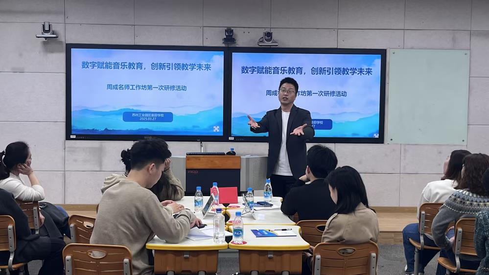 在教育改革的浪潮中,數(shù)字化轉(zhuǎn)型正逐漸改變著傳統(tǒng)的教學模式。蘇州工業(yè)園區(qū)周成初中音樂名師工作坊于3月27日在婁葑學校未來教室舉辦了第一次研修活動,以“數(shù)字化賦能新型教與學模式的研究”為主題,開啟了一場音樂教育與數(shù)字技術深度融合的探索之旅。