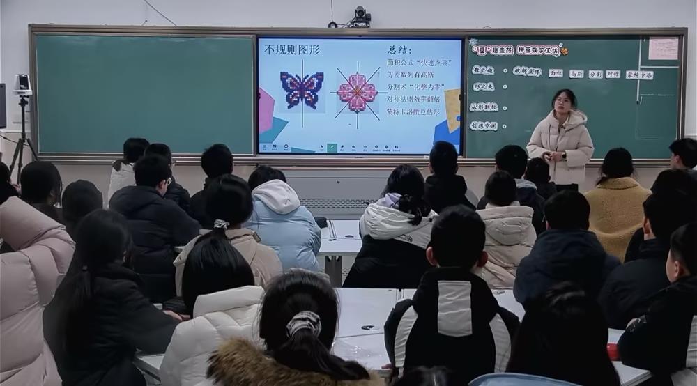 星灣學校屠鈺老師的《圓窗探徑》帶領學生解鎖蘇州園林中的圓之奧秘。屠老師從花窗的圓弧構造中回顧圓心、弦、圓周角等圓的核心概念,循著“觀察—探究—測量”的路徑,巧用垂徑定理、90°圓周角性質等知識破解圓弧半徑測量難題;通過小組合作實測海棠花窗四段圓弧的半徑,讓抽象的幾何定理在動手實踐中落地。課堂融合觀察、推理與實操,讓冰冷的數學知識在園林花窗的古典之美中煥發生機,既感受傳統園林的匠心巧思,又體悟數學的實用價值,真正實現“以景激趣,以知解惑”。