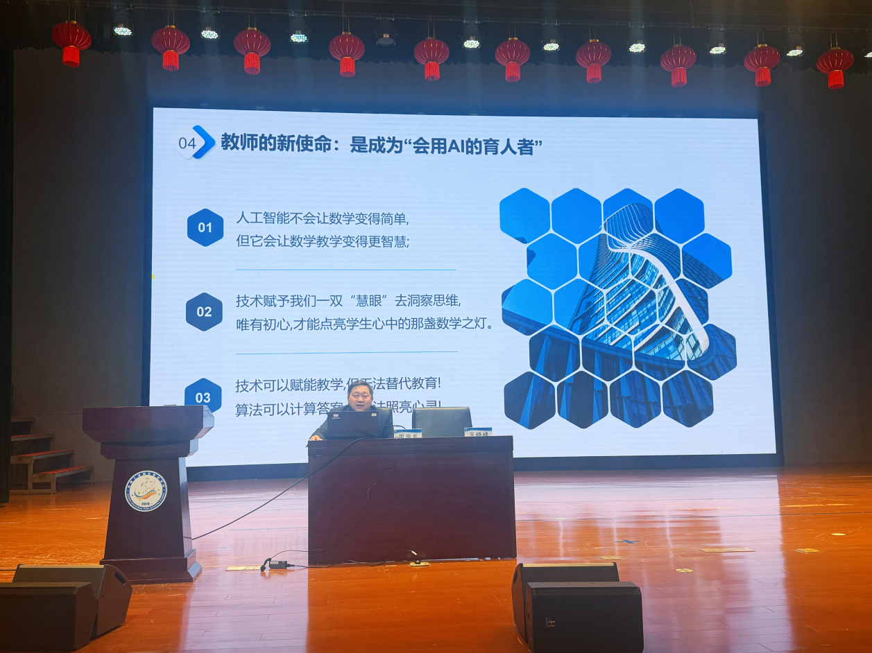 講座《人工智能賦能:初中數(shù)學教學新樣態(tài)的實踐與探索》,星洋學校周海東老師系統(tǒng)闡述了人工智能時代初中數(shù)學教學的三重邏輯轉向——從“知識本位”到“素養(yǎng)本位”、從“信息化”到“智能化”、從“工具理性”到“價值理性”,并剖析了認知、結構、過程、融合四個維度的教學困境。此外,AI賦能教學需精準回應課堂結構性要素的痛點,通過人機協(xié)同重構教學設計、再造教學過程、轉型教學評價,實現(xiàn)從“結果評價”向“過程增值”的跨越。周老師強調,AI無法替代學生的主體性思考與教師的情感關懷,但善用AI的教師正加速拉開專業(yè)發(fā)展差距;唯有以數(shù)據(jù)智能洞察每一份獨特的學習軌跡,以人機協(xié)同喚醒每一處隱藏的潛能,方能在算法與人文的交匯處,實現(xiàn)有溫度、有深度的數(shù)學教學智慧化轉型。