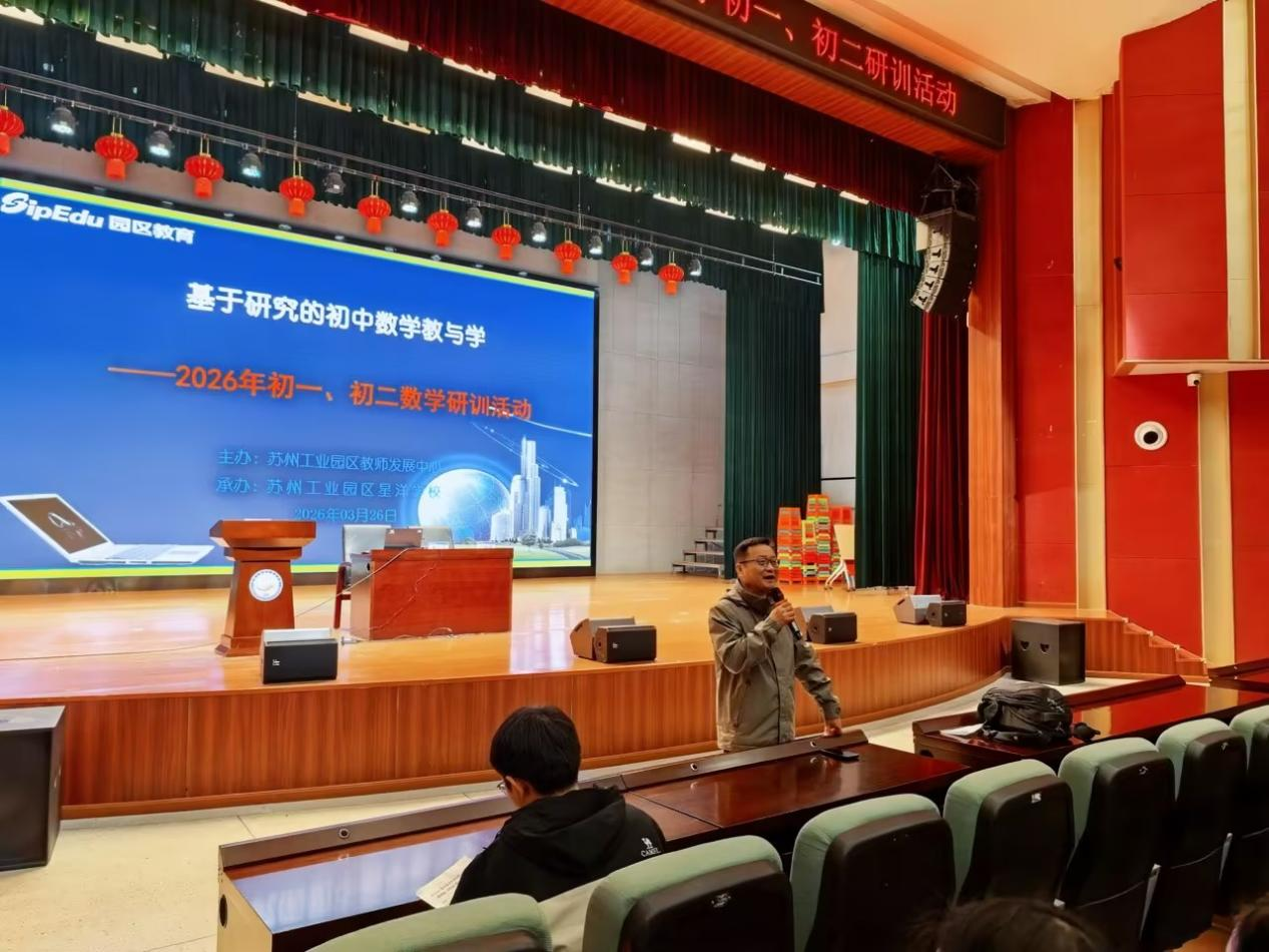 為助力教師教學能力進階、構筑高效優(yōu)質課堂、強化育人綜合素養(yǎng),在科技浪潮推動教育變革的大背景下,AI賦能教育的理念正深度融入教學實踐。2026年3月26日,蘇州工業(yè)園區(qū)“基于研究的初中數(shù)學教與學——2026年初一、初二數(shù)學研訓活動”在蘇州工業(yè)園區(qū)星洋學校舉行。本次活動分為課堂展示、教學研討、專題講座等環(huán)節(jié),六位優(yōu)秀教師各展教學風采,呈現(xiàn)出一堂堂內容生動、精彩紛呈的課程。