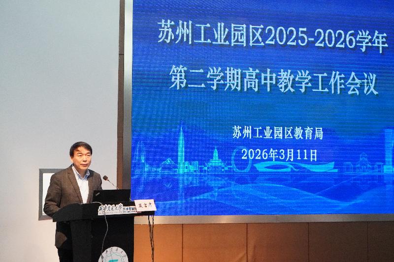 3月11日,2025-2026學年第二學期蘇州工業園區高中教學工作會議在西安交通大學蘇州附屬中學方洲路校區召開。會議圍繞“協同融合、新質育人”年度主題,聚焦課程教學改革與育人模式創新,部署新學期重點工作,致力于推動區域高中教育向著更高質量、更優生態邁進。會議由園區教育局基礎教育處處長楊原明主持。