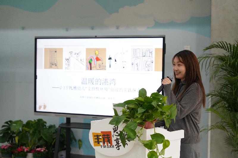 在本次托育專場(chǎng)活動(dòng)中,來自四所幼兒園的托育教師立足實(shí)踐、聚焦成長(zhǎng),帶來深度專業(yè)分享。文苑路幼兒園教師傅清云以無界融合、游戲育人為核心,重構(gòu)托班一日活動(dòng),讓環(huán)境與互動(dòng)賦能幼兒自主探索;豐茂幼兒園教師許維維以回應(yīng)性照護(hù)為抓手,聚焦幼兒真實(shí)需求,以細(xì)致觀察與溫情互動(dòng)構(gòu)建安全依戀關(guān)系;環(huán)州幼兒園教師章星藝以溫暖守護(hù)、環(huán)境育人為理念,從情感、秩序、感官等維度打造有溫度的托育空間,筑牢幼兒安全感;新馨幼兒園教師王靚以自然浸潤(rùn)、漸進(jìn)適應(yīng)為路徑,依托家園協(xié)同與階梯式引導(dǎo),助力幼兒平穩(wěn)融入集體生活。