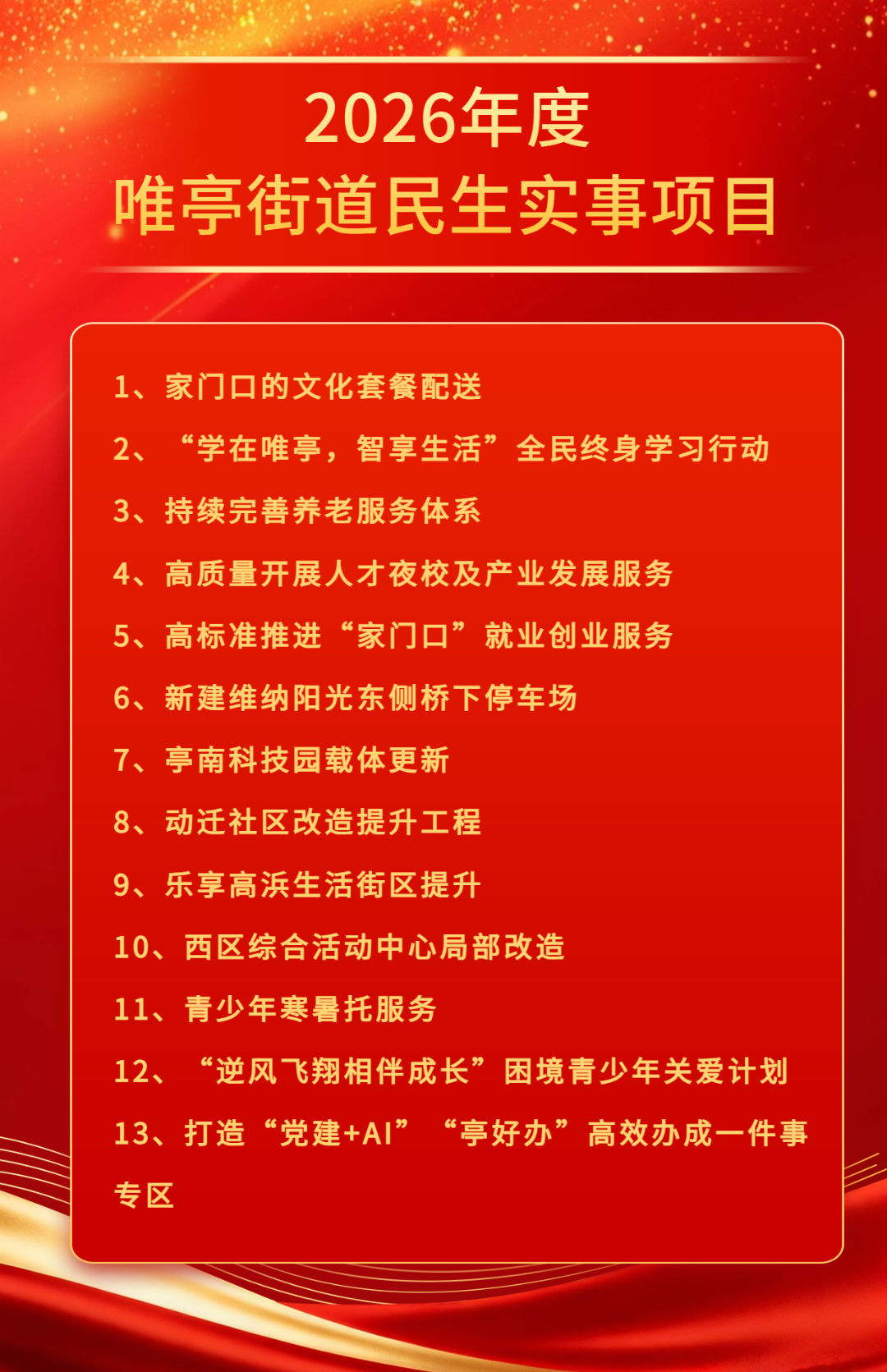 會議現場通過了唯亭街道2026年民生實事項目代表票選方法,全體到會議政代表針對2026年度唯亭街道民生實事項目進行票決,最終確定了“家門口的文化套餐配送”、“青少年寒暑托服務”等十三項2026年度唯亭街道民生實事項目。